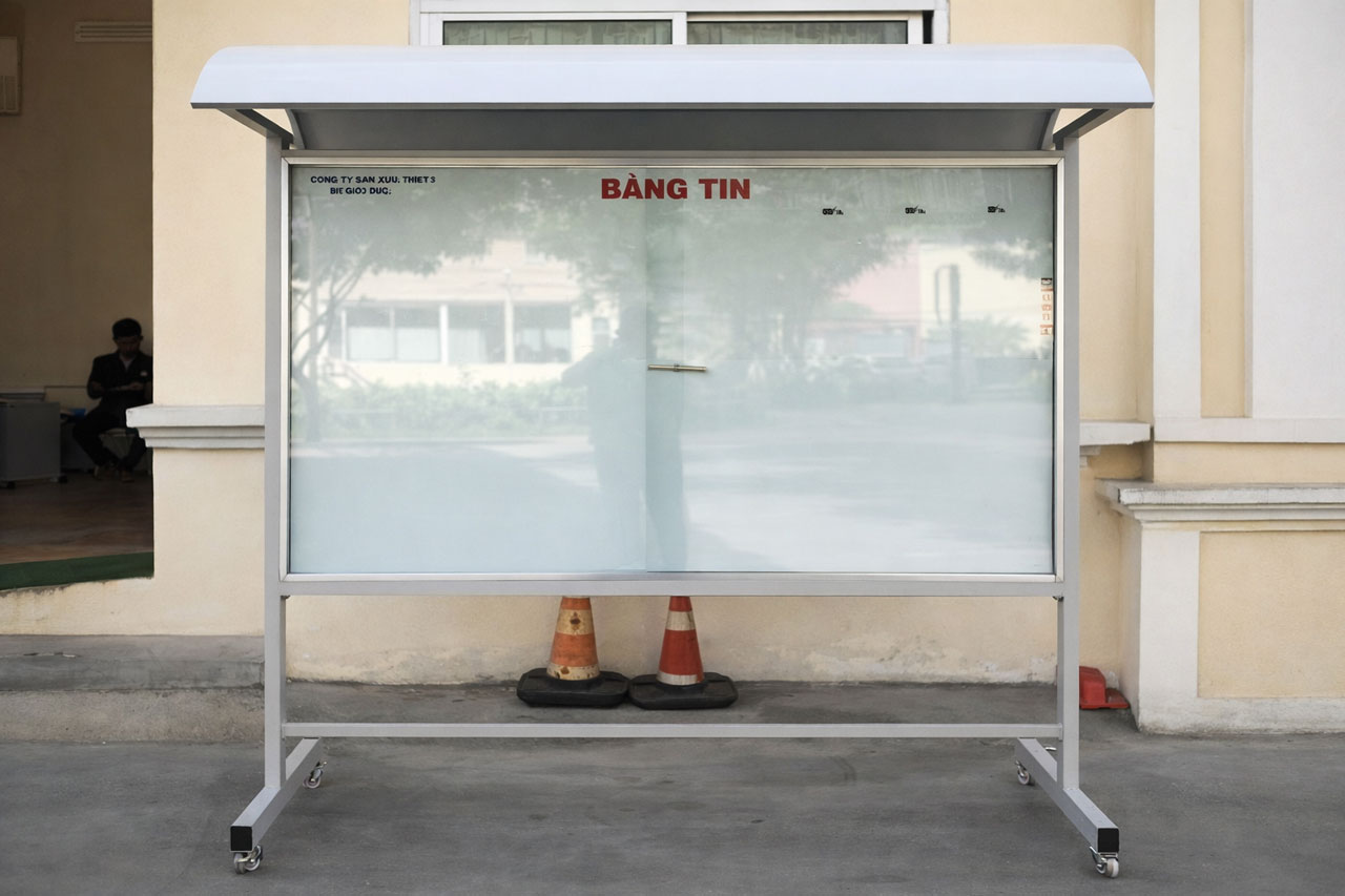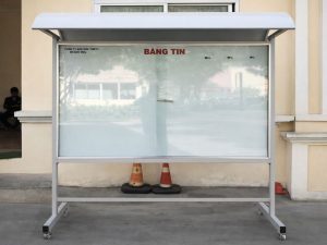 + Mái che bảo vệ bảng khỏi mưa nắng, giúp nội dung thông báo luôn rõ ràng và bền đẹp.